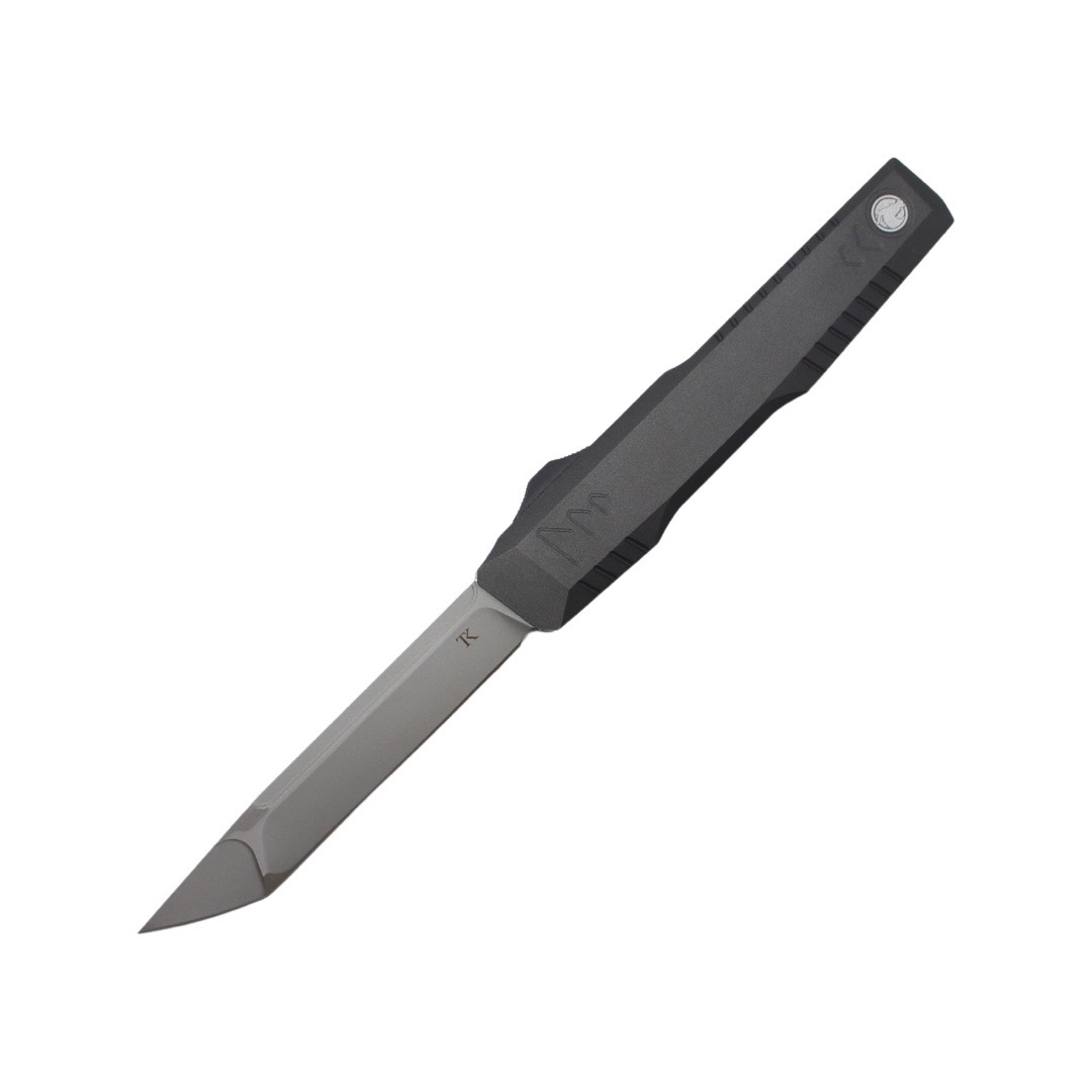 TacKnives MTU16G is another collaboration with Fat Dragon knife design. This OTF knife is on the large to extra-large side. Being a super fan of star wars, we wanted to design something that kind of resembled a lightsaber and was futuristic and machine looking.