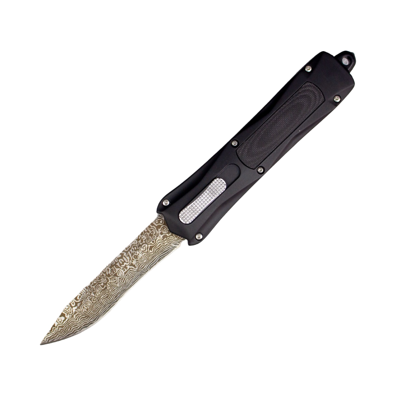 TacKnives MTU5 OTF series offers various blade styles. The body of the knife is black with a window breaker at the end. The OTF switch is located on the face of the handle. Many users find that when the switch is on the face of the handle, the action is a lot smoother and easier. If the blade is double-sided, then the knife is operable by right-handed or left-handed. If the blade is one-sided such as Tanto or Drop Point, then the knife is only operable by right-handed because the clip is not reversible.