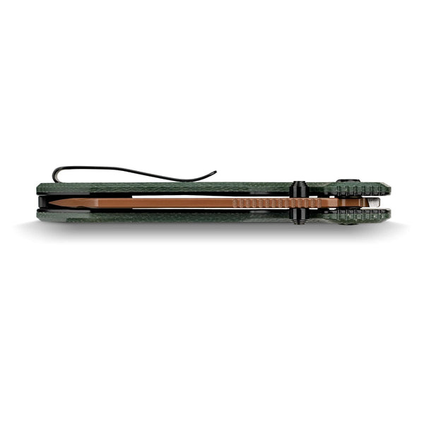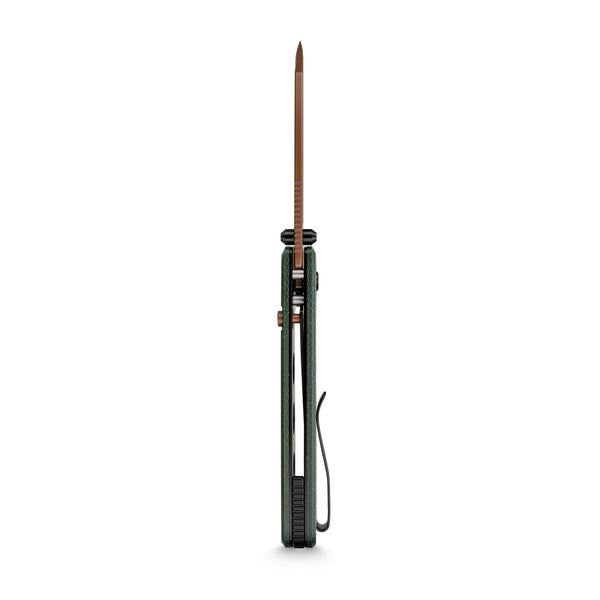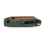 The Vosteed Raccoon TLL with Modified Sheepsfoot (MS) blade in Copper Dune and Green Micarta is a bold, outdoors-ready EDC folder. The 3.25″ 14C28N MS blade is finished in a warm Copper Dune coat at HRC 59±1, delivering excellent edge retention, corrosion resistance, and easy sharpening.