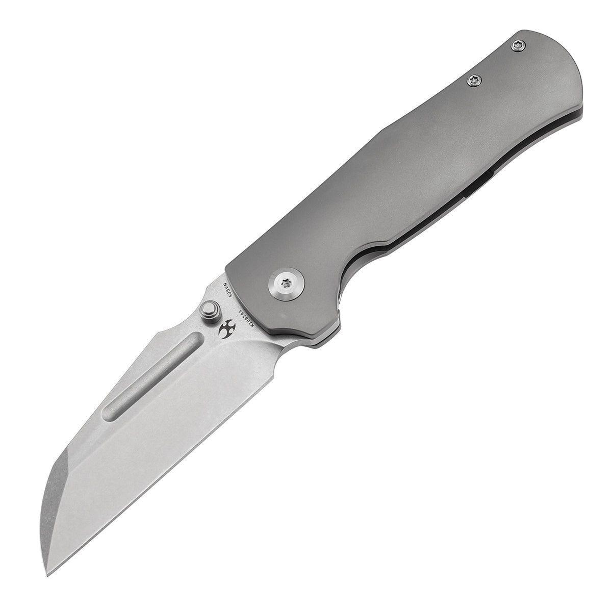 The Kansept Dreadnaught, designed by Daniel Sparhawk, is a full-size premium frame lock folder with a substantial 3.49″ CPM S35VN blade and titanium handles. The Dreadnaught is built for those who want maximum capability from their everyday carry — a serious blade in a serious package. Stonewashed and Bronze Anodized titanium handle options.