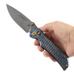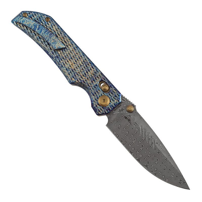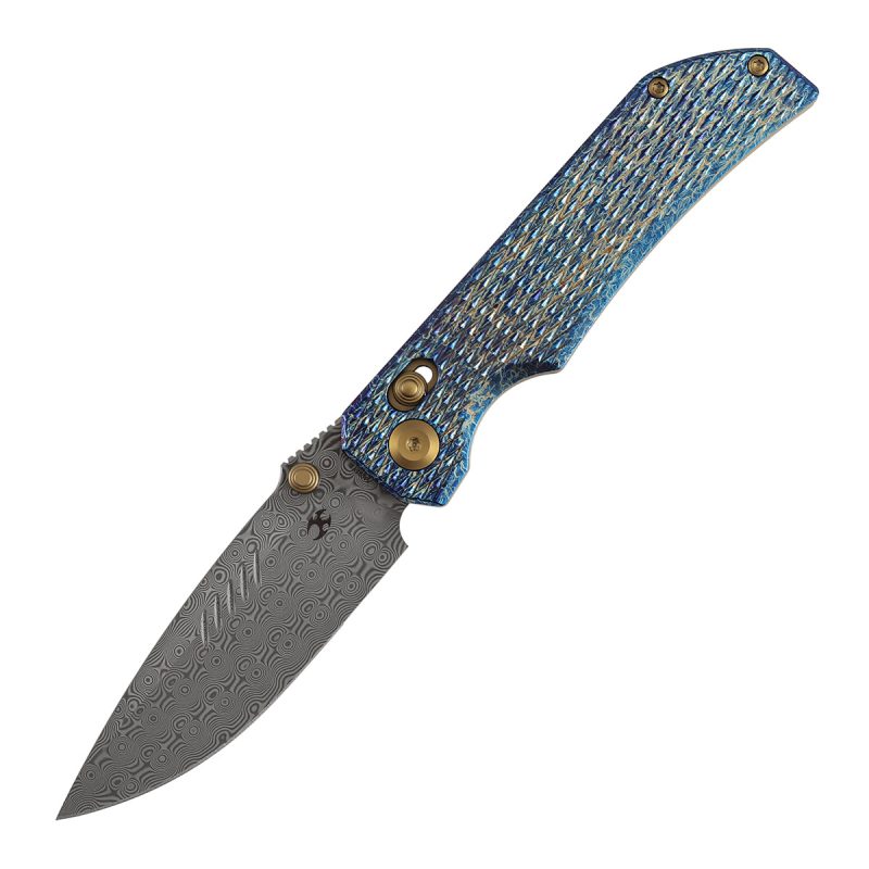 The Kansept Eaglestrike, designed by James Lowe, is a premium crossbar lock everyday carry folder featuring a 3.73″ Damascus blade paired with a spectacular Lightning Strike Finish Titanium handle with Diamond Pattern texture. The Eaglestrike is a high-end collector piece that also functions beautifully as a daily carry.
