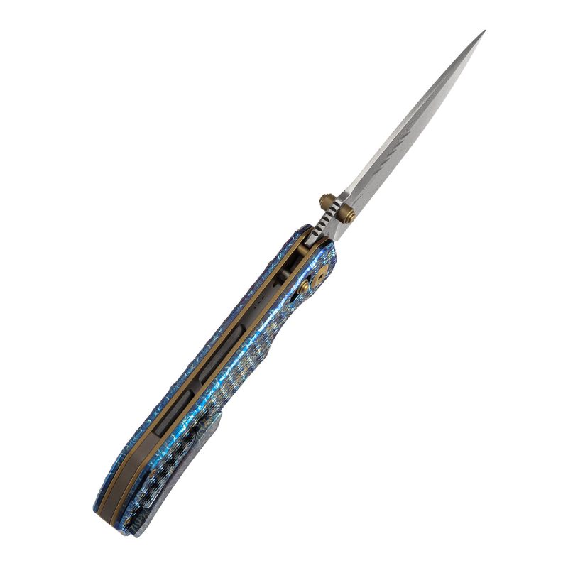 KANSEPT EAGLESTRIKE FOLDING KNIFE 3.73″ Damascus BLADE LIGHTNING STRIKE FINISH TITANIUM WITH DI – K1095V5
