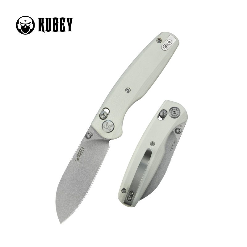KUBEY BREEZE FOLDING KNIFE 3.03″ 14C28N STONEWASH BLADE WHITE G10 HANDLE EDC – KU288E