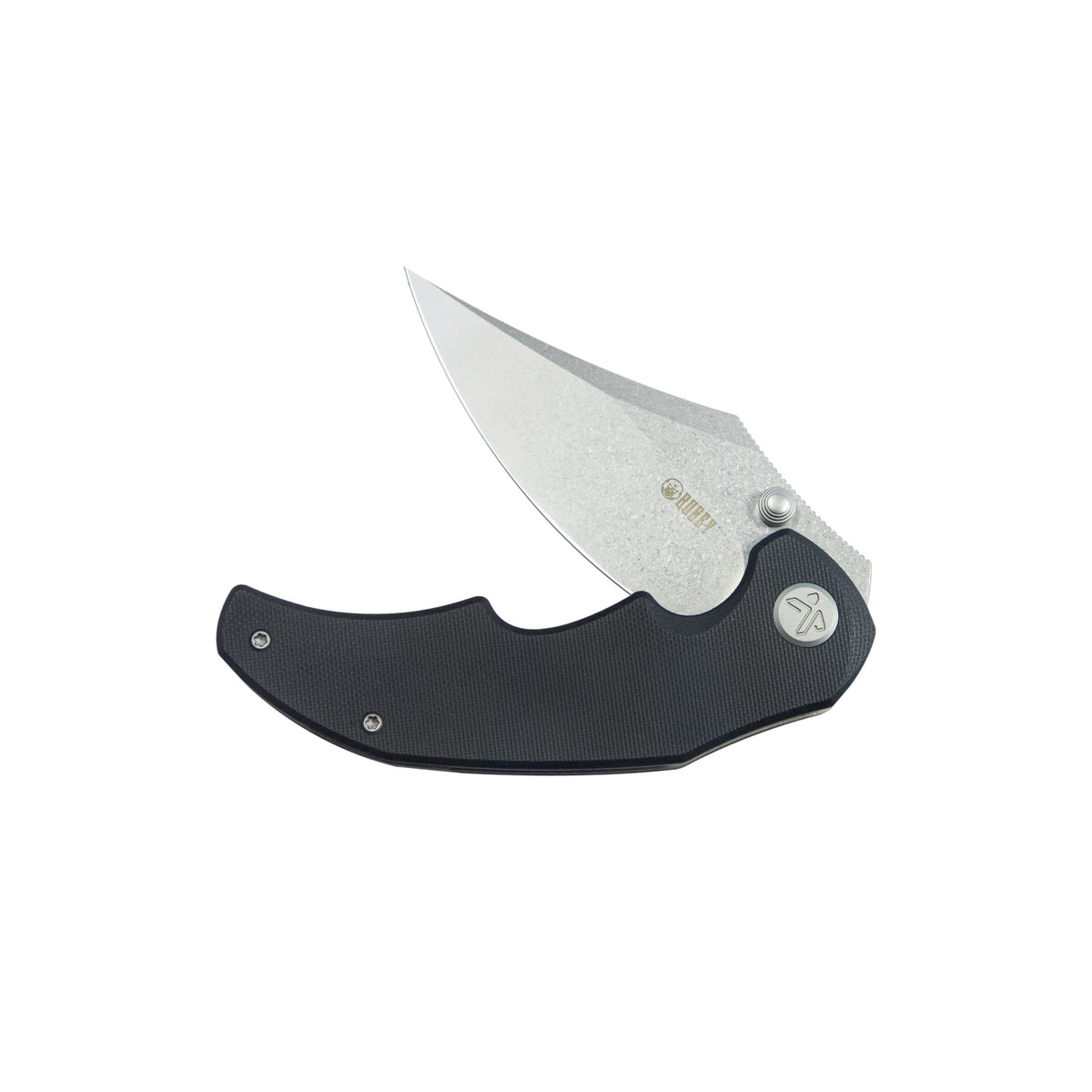The G10 handle is ergonomically shaped for a full four-finger grip. Liner lock provides solid blade retention. Reversible tip-up clip. Lifetime warranty. Made in China by Kubey.