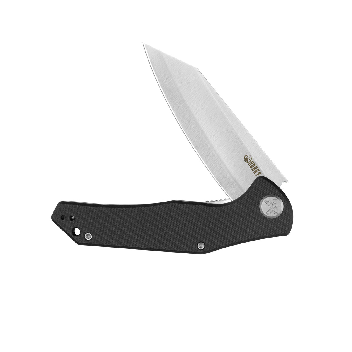 The G10 handle is ergonomic and full-grip. Liner lock ensures reliable blade retention. Reversible tip-up clip. Lifetime warranty. Made in China by Kubey.