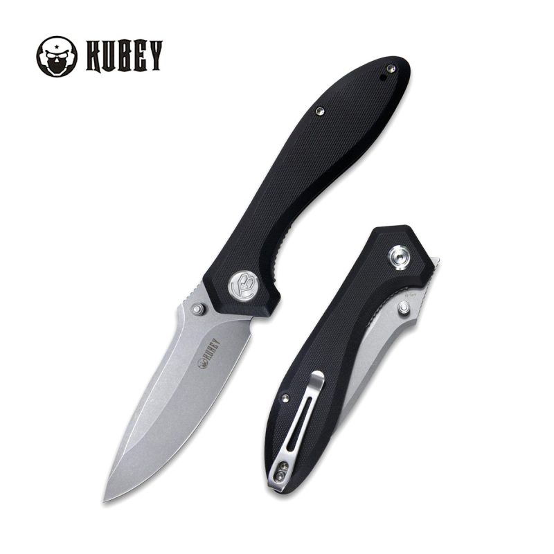 The slim G10 handle is comfortable for extended carry and use. Liner lock provides secure blade retention. Reversible tip-up clip. Lifetime warranty. Made in China by Kubey.