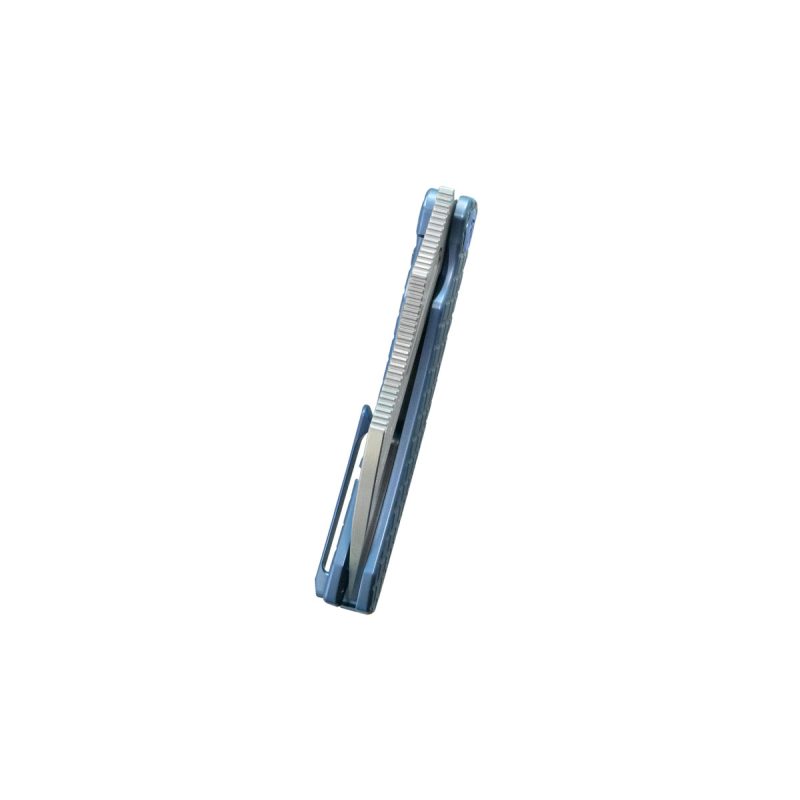 KUBEY SYLOW FOLDING KNIFE 3.46″ 14C28N STONEWASH BLADE BLUE TITANIUM HANDLE EDC – KU260B