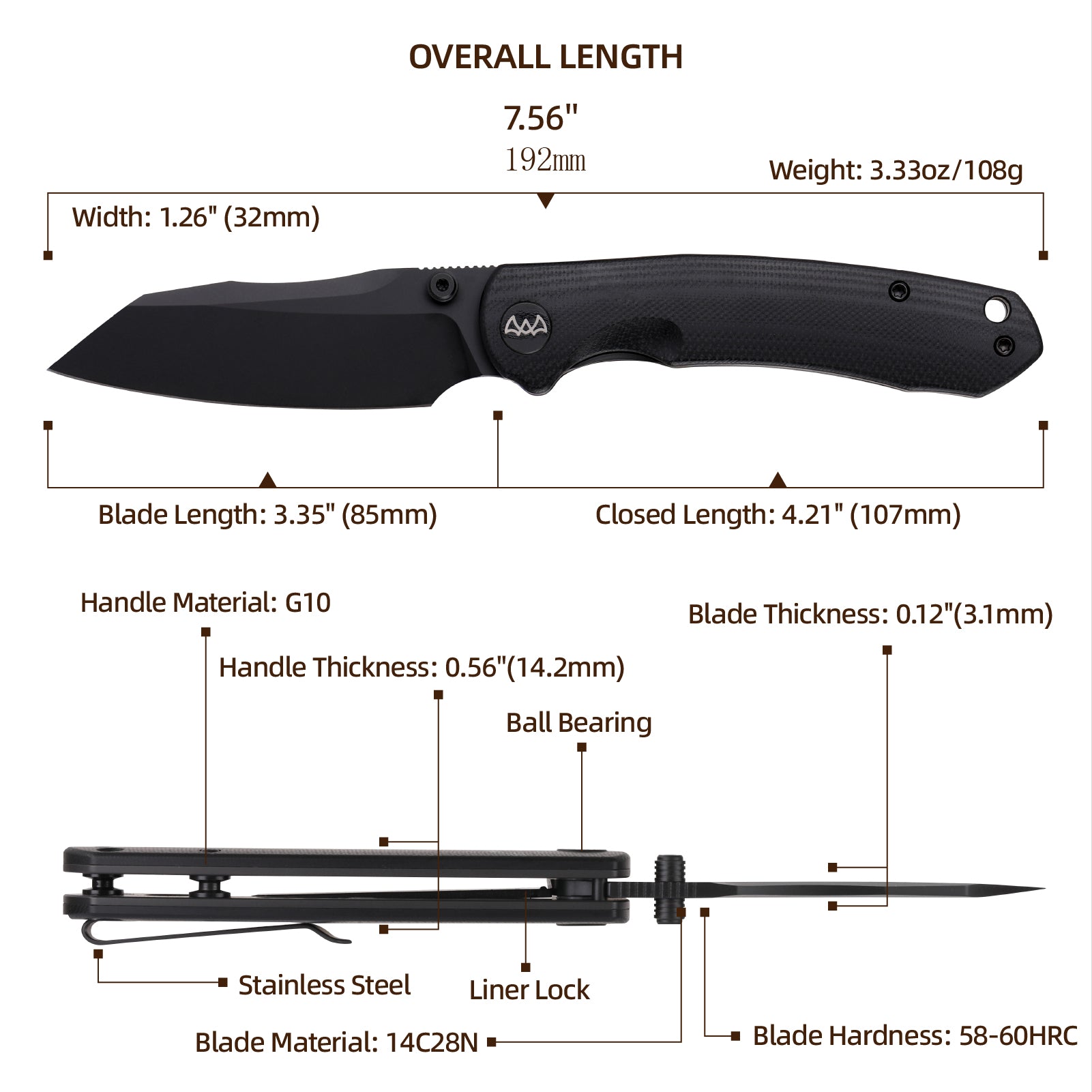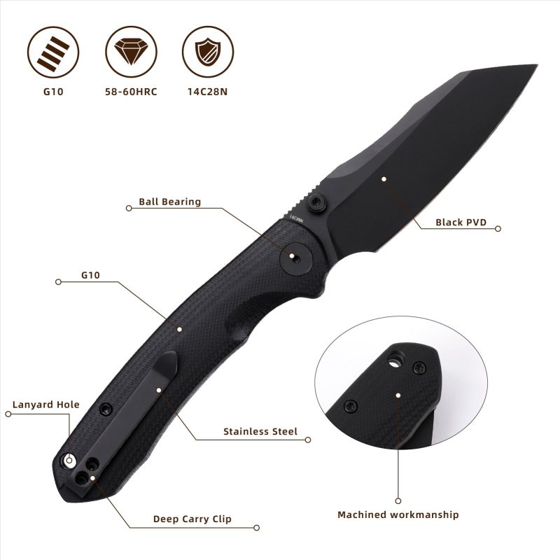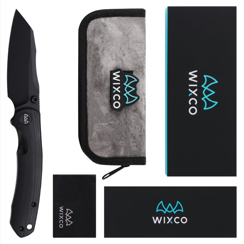 WIXCO AXOR FOLDING KNIFE 3.35″ 14C28N BLACK BLADE BLACK G10 HANDLE EDC