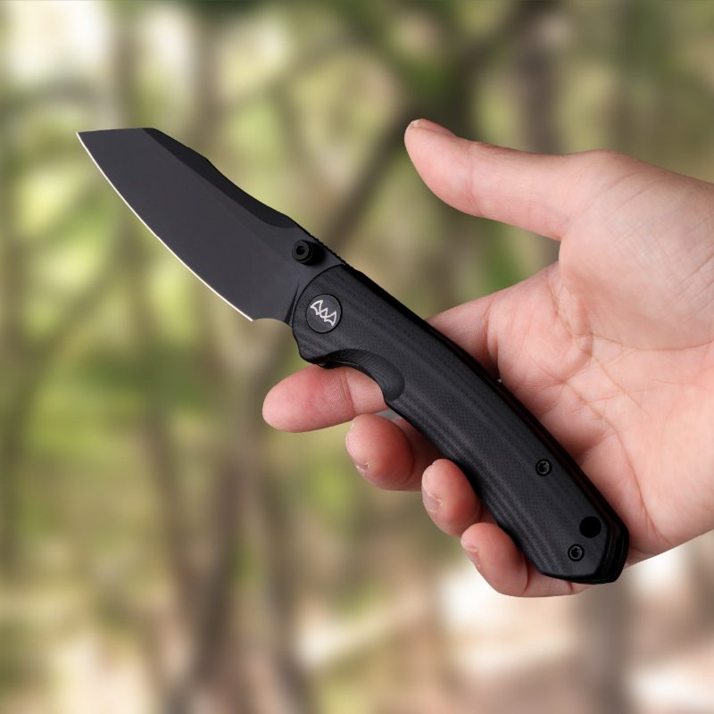 The Wixco Axor is an iconic everyday carry folding knife featuring a 3.35″ 14C28N blade with a black finish and modified sheepsfoot profile. The index finger curve on the blade provides better grip for piercing tasks. Built with a black G10 handle and liner lock mechanism with thumb stud deployment.