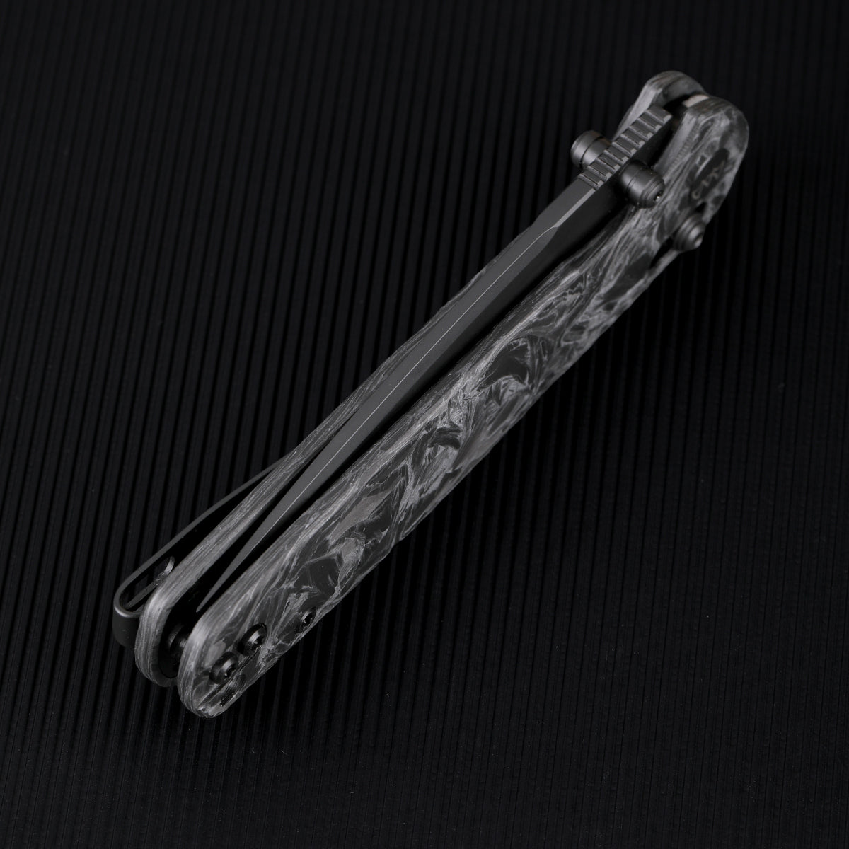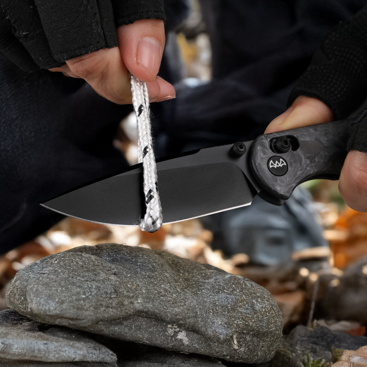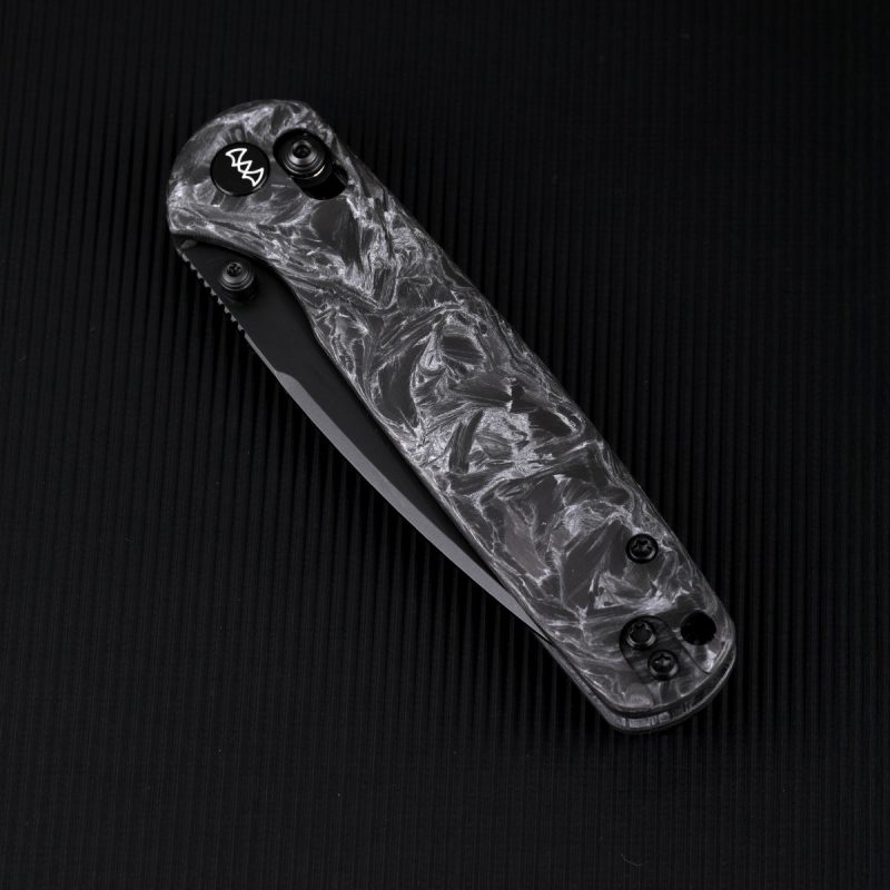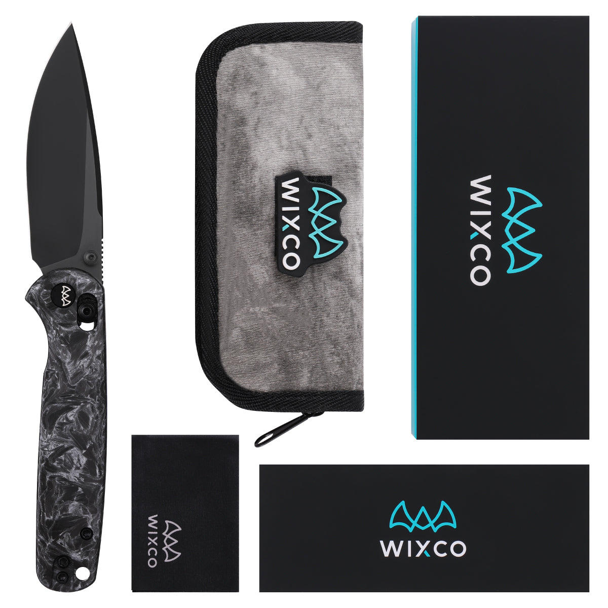 WIXCO DRAX II FOLDING KNIFE 3.23″ 14C28N BLACK BLADE GREY SHREDDED CARBON FIBER HANDLE EDC