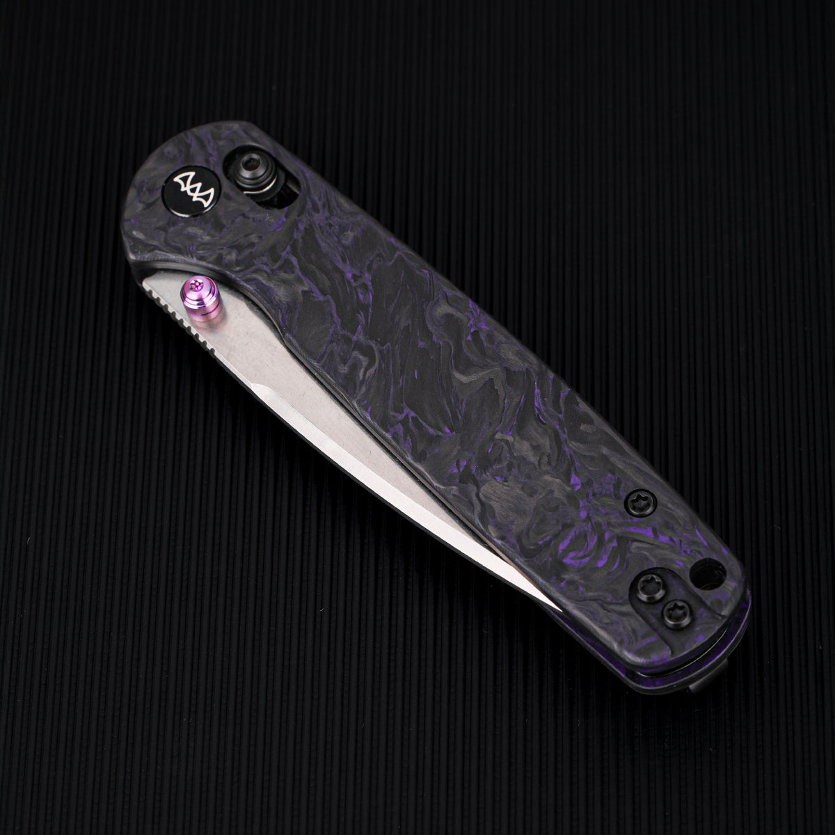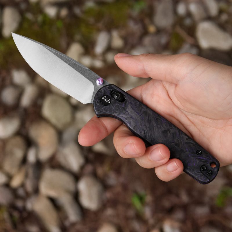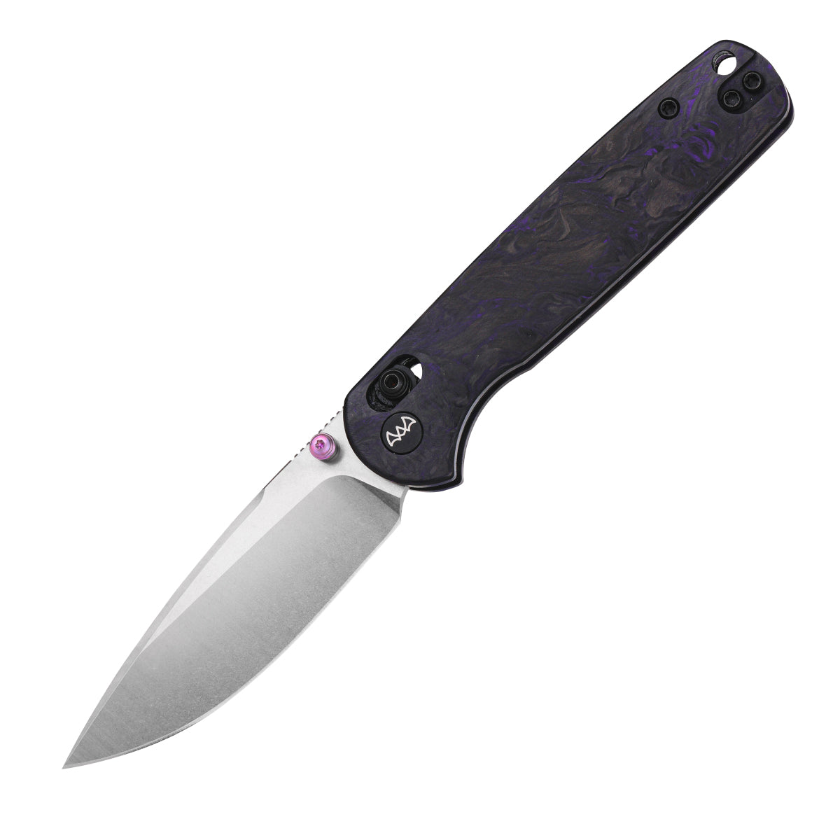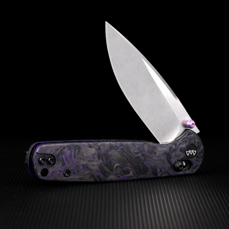 The Wixco Drax II is a classic and minimalist everyday carry folding knife featuring a 3.23″ 14C28N blade with a stonewash finish. Built with a purple shredded carbon fiber handle and crossbar lock mechanism with thumb stud deployment. Reversible deep carry clip for versatile carry options.