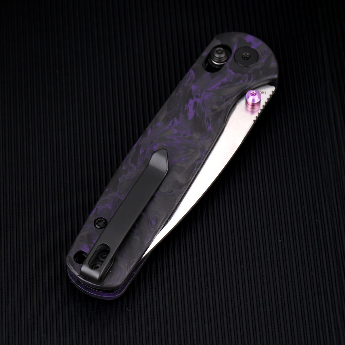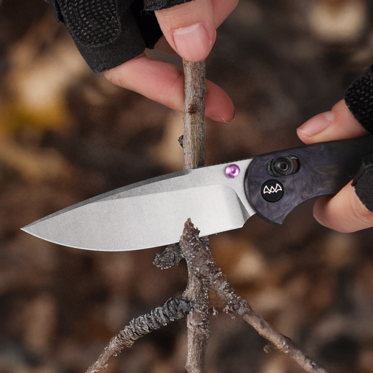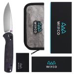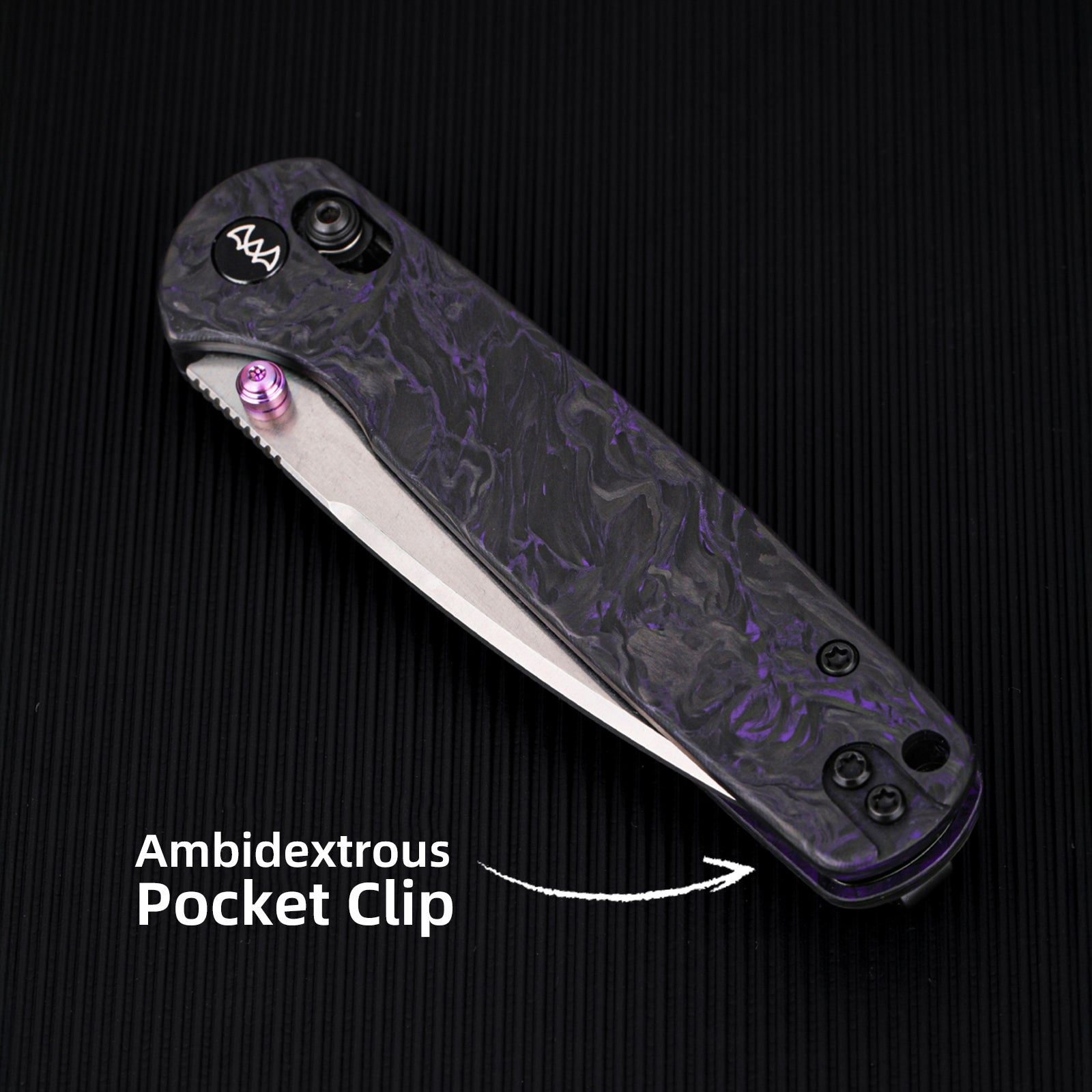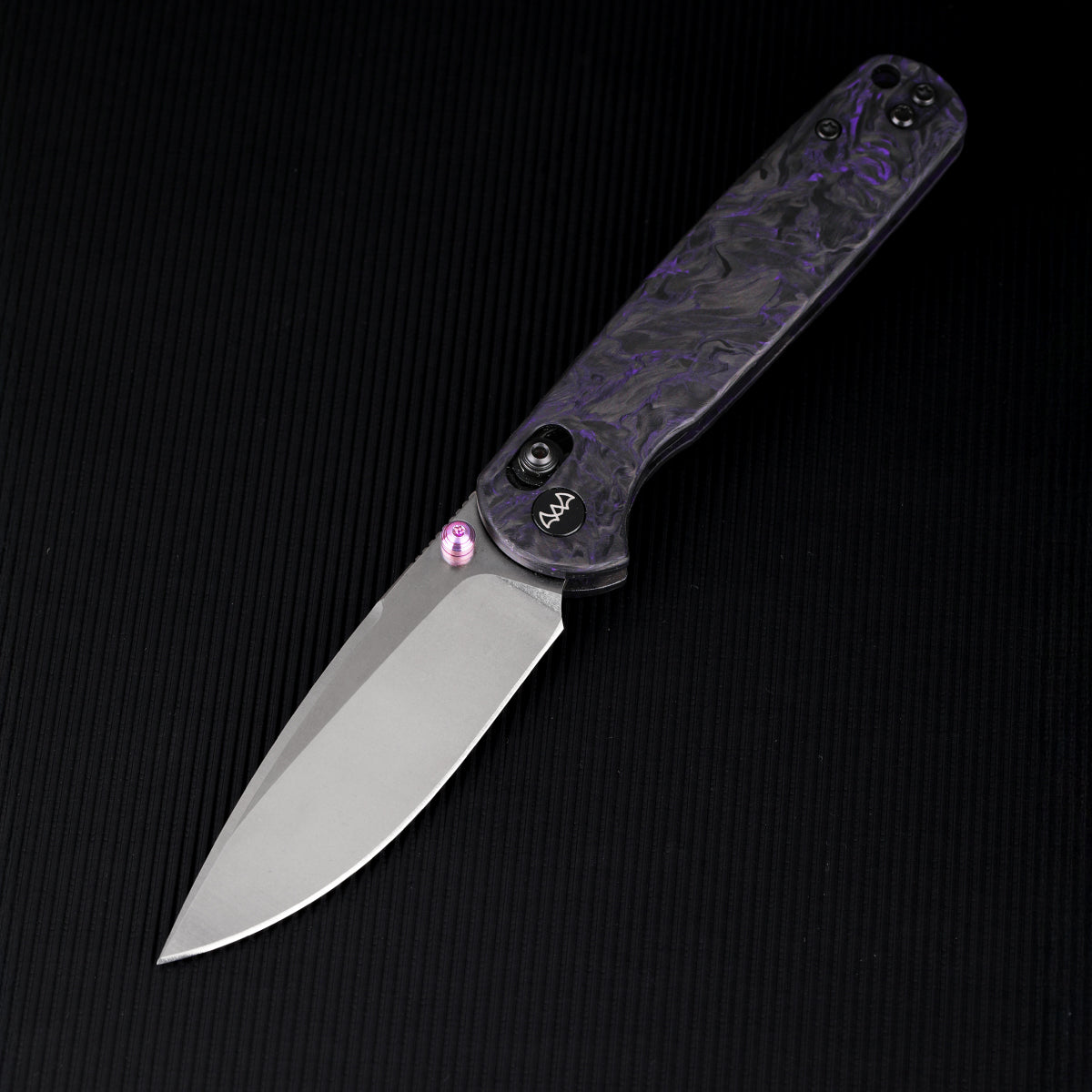 The Wixco Drax II is a classic and minimalist everyday carry folding knife featuring a 3.23″ 14C28N blade with a stonewash finish. Built with a purple shredded carbon fiber handle and crossbar lock mechanism with thumb stud deployment. Reversible deep carry clip for versatile carry options.