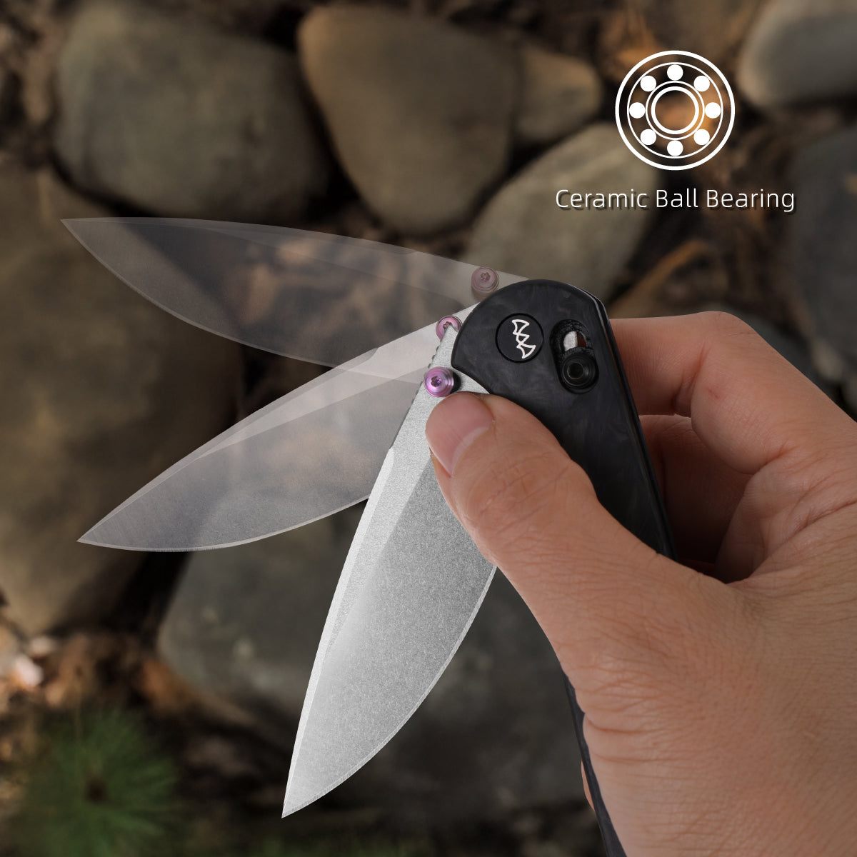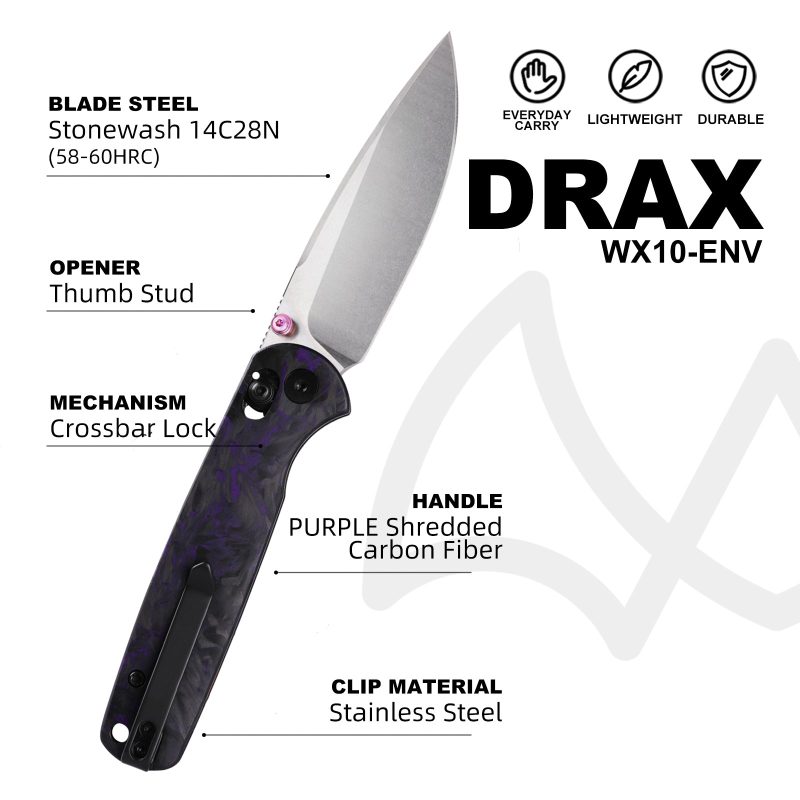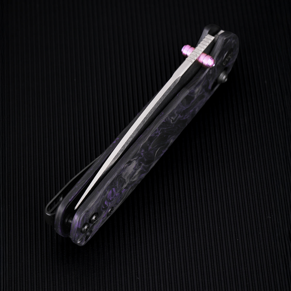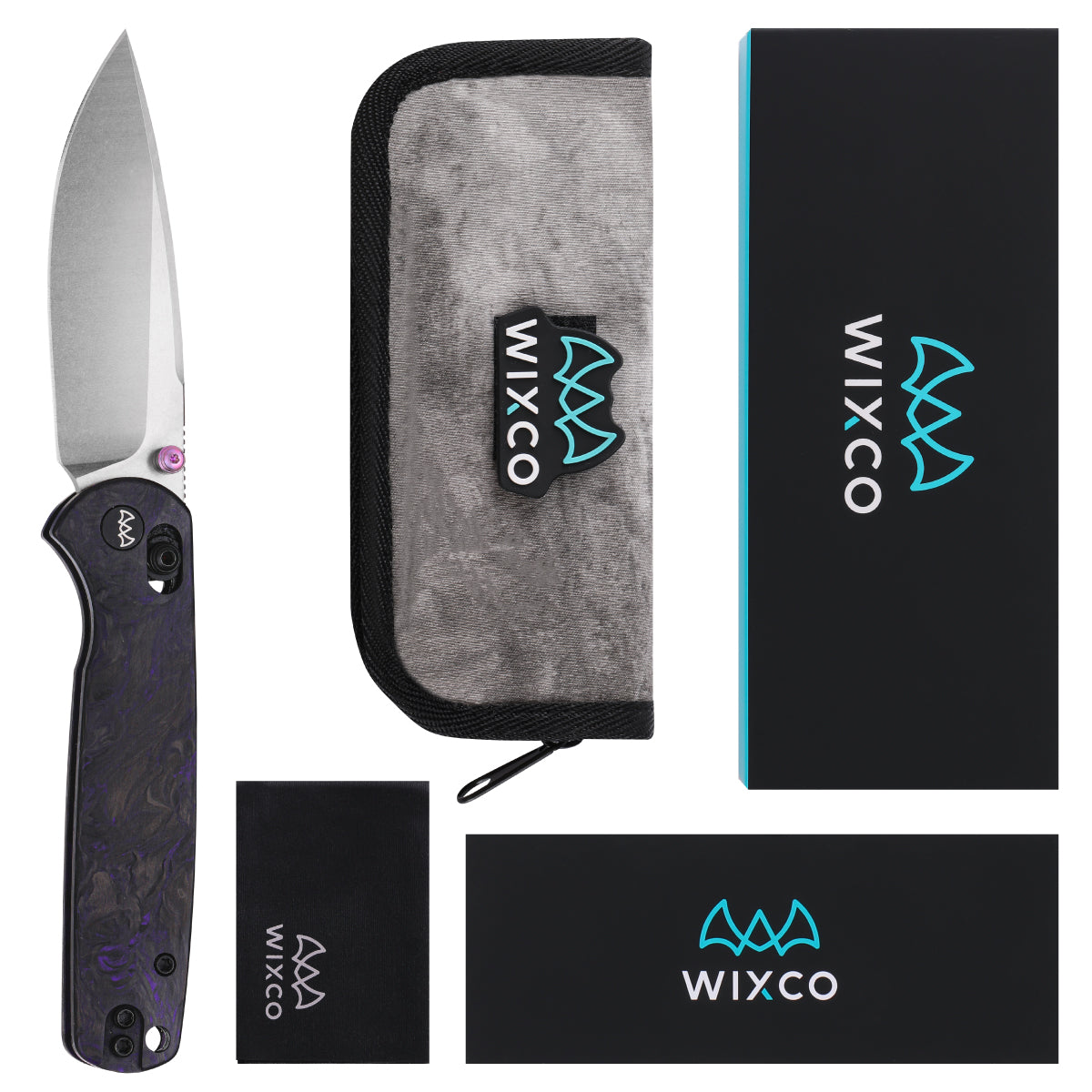WIXCO DRAX II FOLDING KNIFE 3.23″ 14C28N STONEWASH BLADE PURPLE SHREDDED CARBON FIBER HANDLE EDC
