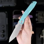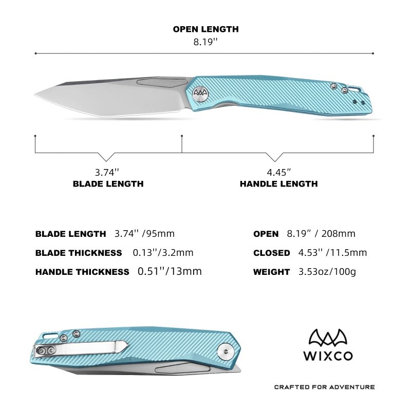 The Wixco Fenix is a sleek everyday carry folding knife featuring a 3.74″ N690 blade with a bead blast finish. Built with an aluminum handle in mint green, it uses a liner lock mechanism with front flipper deployment. Designed for EDC, outdoor use, and tactical tasks.