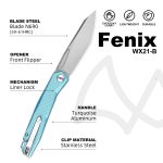 WIXCO FENIX FOLDING KNIFE 3.74″ N690 BEAD BLAST BLADE MINT GREEN ALUMINUM HANDLE EDC