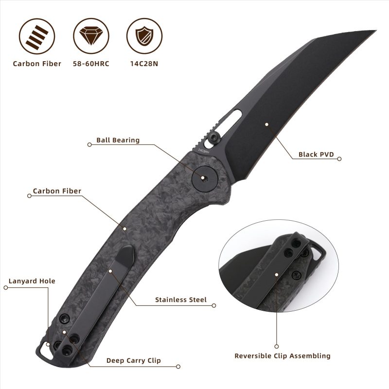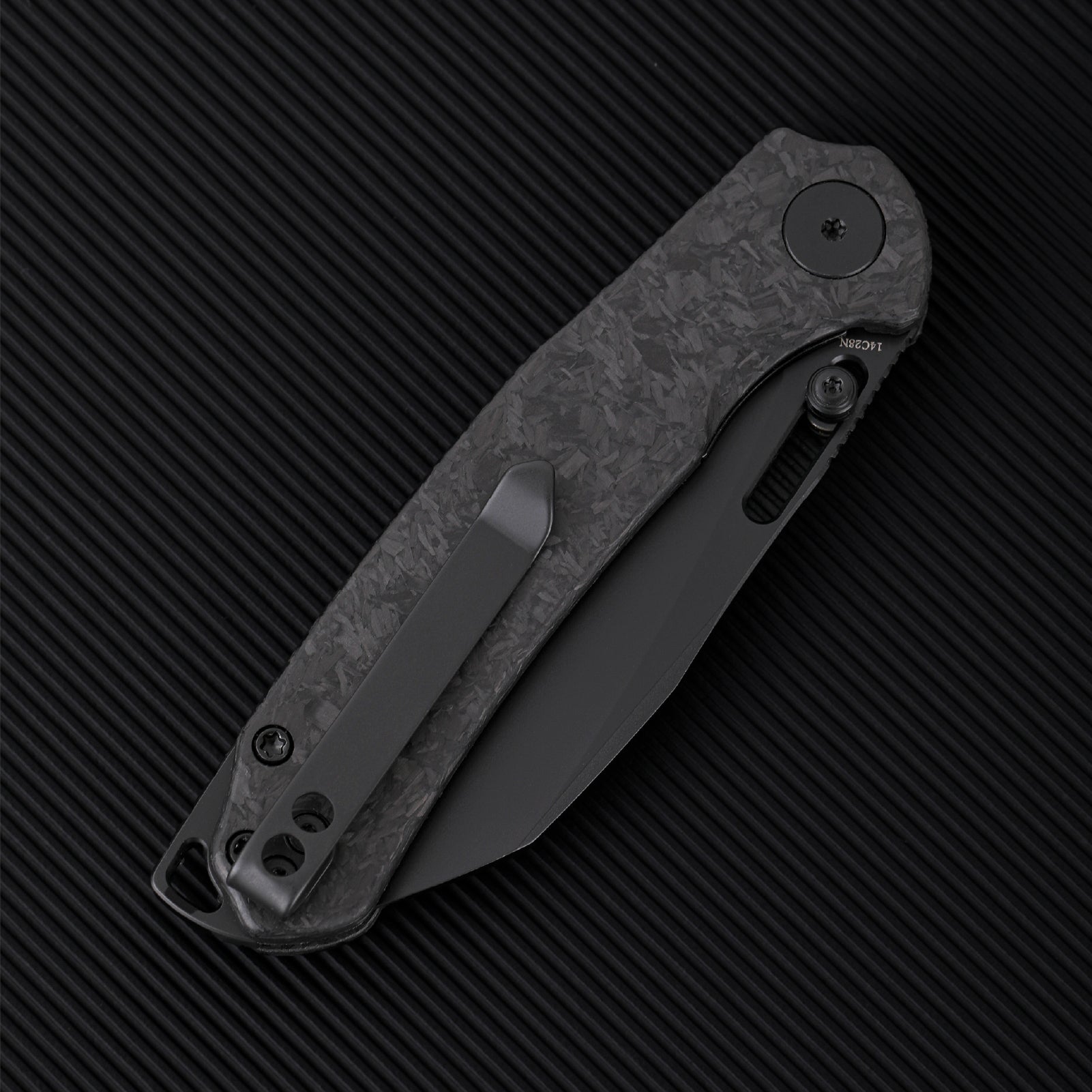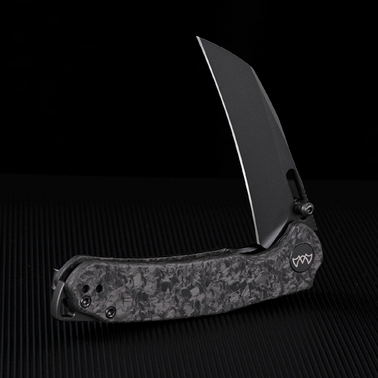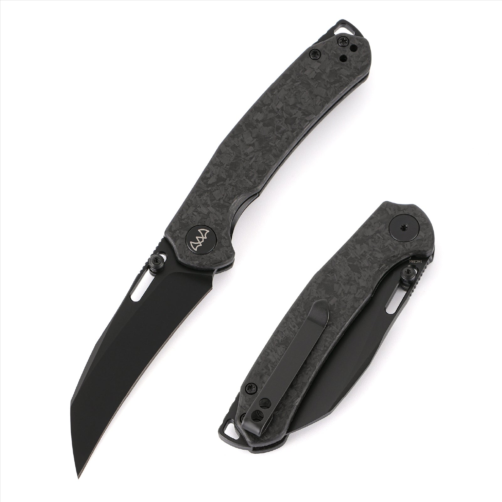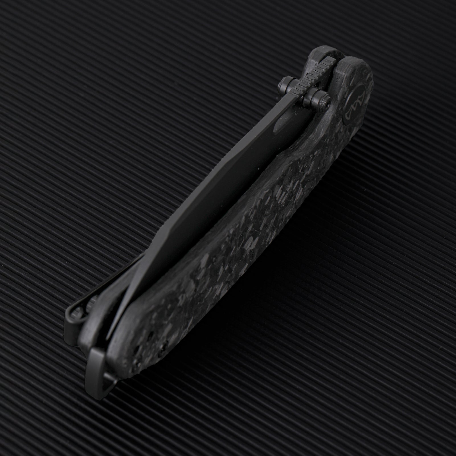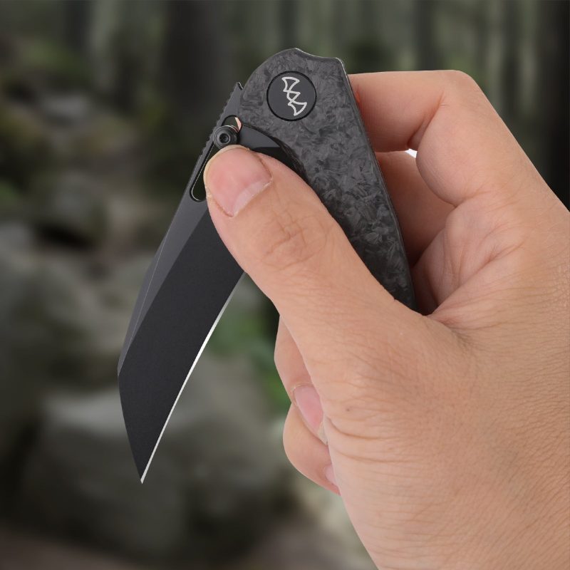 WIXCO WORTEX FOLDING KNIFE 3.1″ 14C28N BLACK BLADE BLACK SHREDDED CARBON FIBER HANDLE EDC
